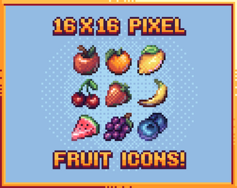 A small, colorful set of 16x16 pixel fruit icons perfect for games, UI elements, or any creative project! Each fruit is hand-crafted with a simple, charming pixel style that fits right in with modern indie aesthetics.
